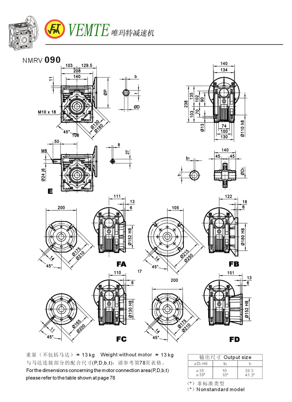 NMRV090減速機外殼:鋁合金(機座:025-105),鑄鐵(機座:110-130)。NMRV90減速機-技術參數(shù):